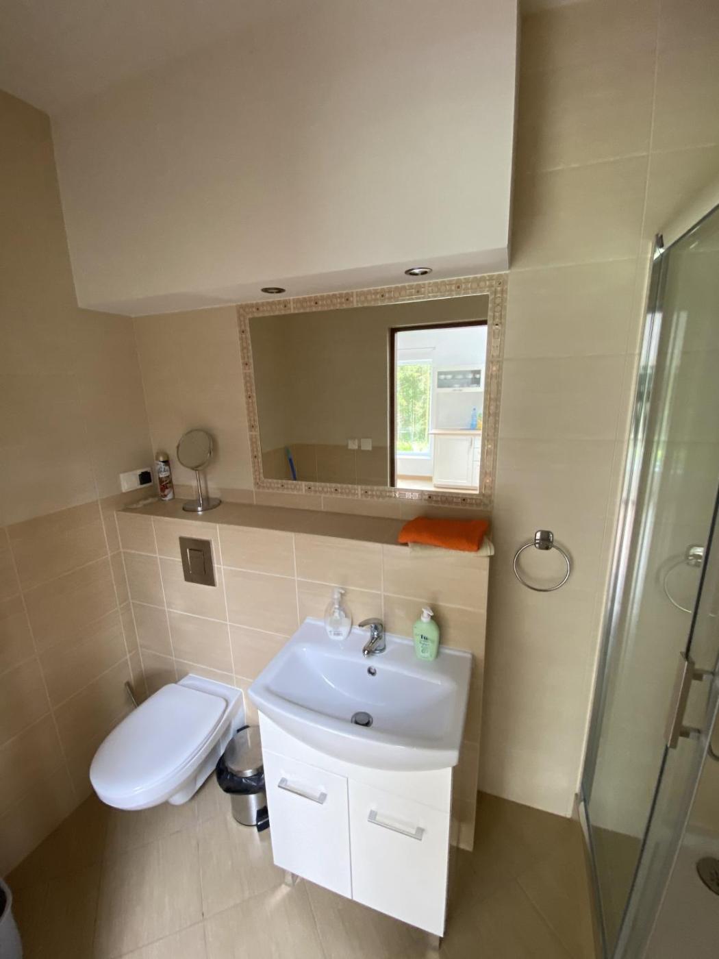 Dom z 2 sypialniami. This holiday home features a fireplace. Boasting a private entrance, this holiday home also includes 2 bedrooms, a seating area and 1 bathroom with a shower and a hairdryer. Guests will find a stovetop, a refrigerator, kitchenware and a microwave in the kitchenette. The holiday home also features a barbecue. Featuring a terrace with lake views, this holiday home also offers a washing machine and a flat-screen TV with satellite channels. The unit has 3 beds. Dom wakacyjny - 5 osobowy. Powierzchnia pokoju ok.: 66 mkw.