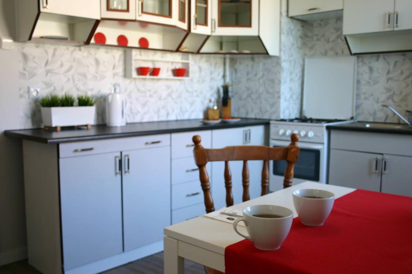 Apartament. The apartment features 2 bedrooms, 1 bathroom and a kitchen. The well-fitted kitchen has a stovetop, a refrigerator, kitchenware and an oven. Among the room amenities are a wardrobe, an electric kettle and heating as well as ancourtyard view. The unit offers 2 beds. Apartament - 4 osobowy. Powierzchnia pokoju ok.: 40 mkw.
