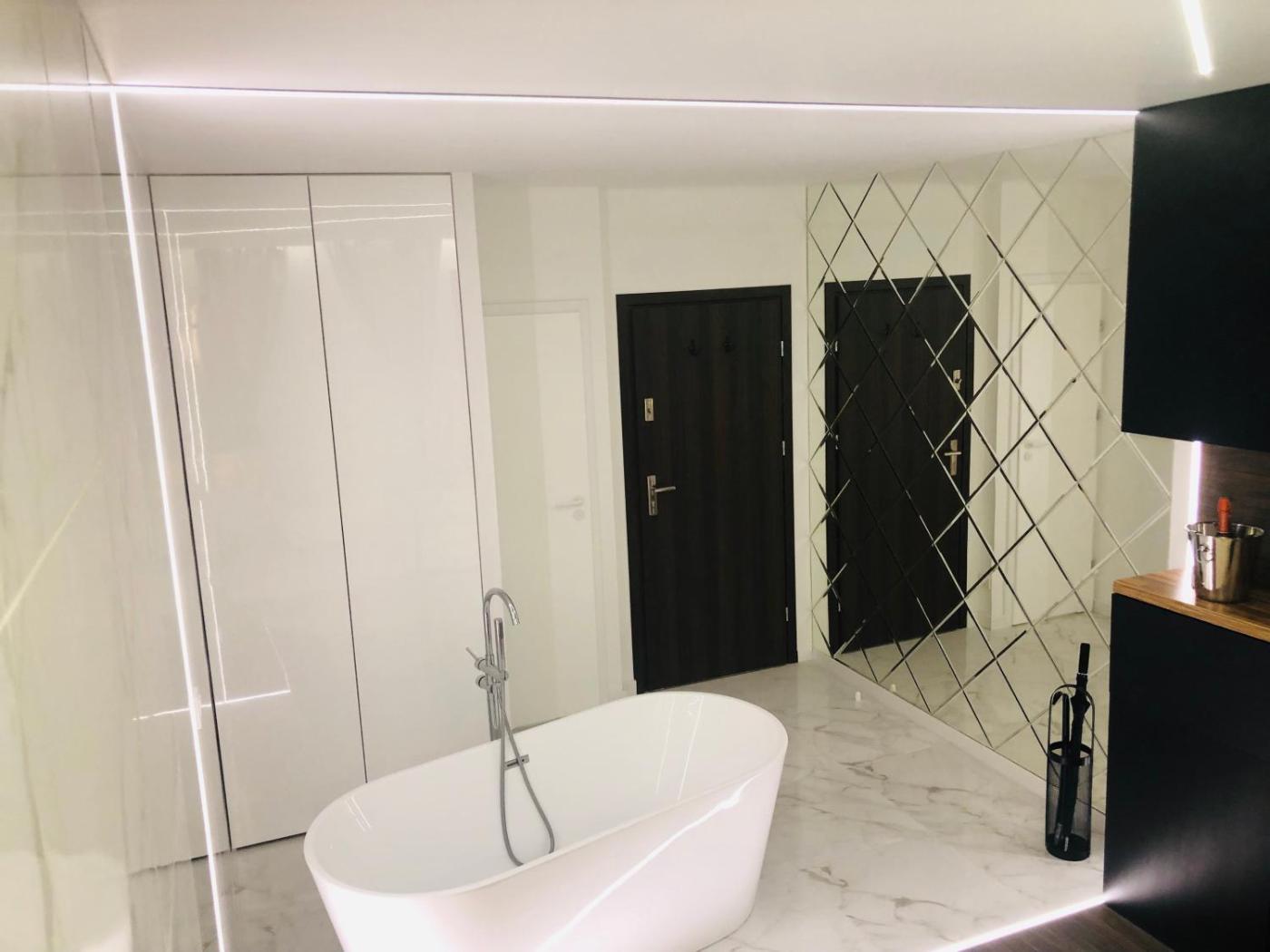 Apartament typu studio. Featuring a private entrance, this apartment consists of a kitchen, 1 bedroom and 1 bathroom with a walk-in shower and a hairdryer. In the well-fitted kitchen, guests will find a stovetop, a refrigerator, a dishwasher and kitchenware. The apartment provides a washing machine, a tea and coffee maker, a dining area, parquet floors and a flat-screen TV with cable channels. The unit offers 1 bed. Apartament - 2 osobowy. Powierzchnia pokoju ok.: 25 mkw. ;