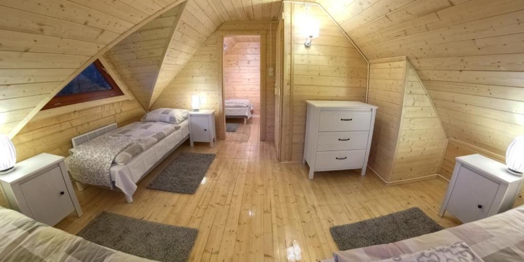 Domek z 2 sypialniami. This chalet features 1 living room, 2 separate bedrooms and 1 bathroom with a bath or a shower. Guests will find a stovetop, a refrigerator, a dishwasher and kitchenware in the kitchen. The chalet also comes with a barbecue. A seating area with a flat-screen TV, a washing machine and a terrace are offered in this chalet. The unit has 6 beds. Domek - 6 osobowy. Powierzchnia pokoju ok.: 47 mkw.