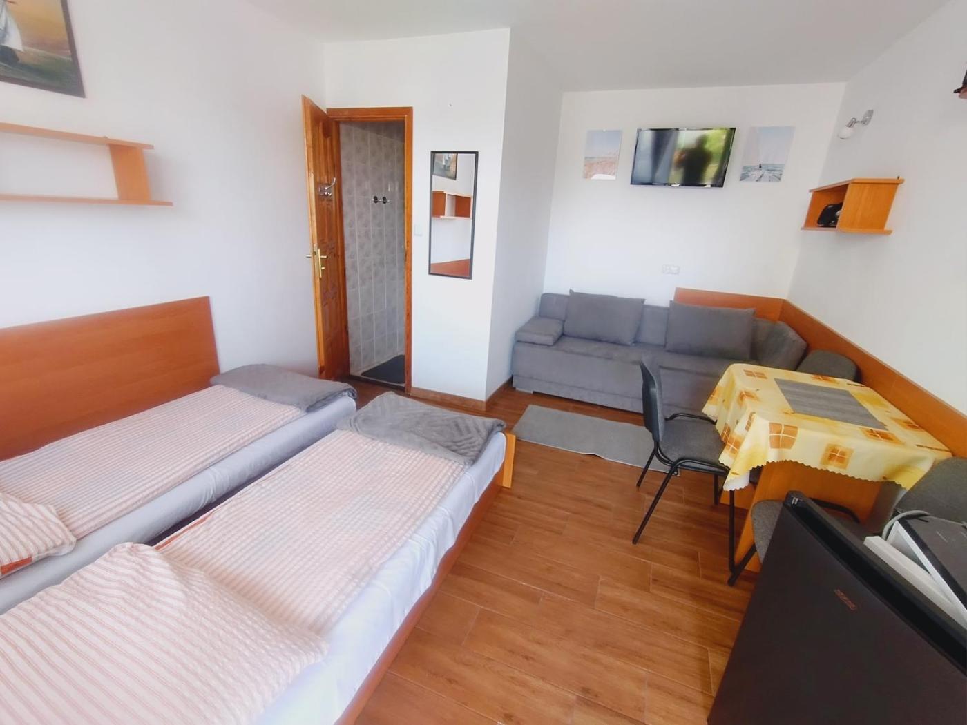 Pokój Trzyosobowy z prywatną łazienką. W tej opcji zakwaterowania zapewniono 2 łóżka. Pokój Trzyosobowy - 3 osobowy. ;
